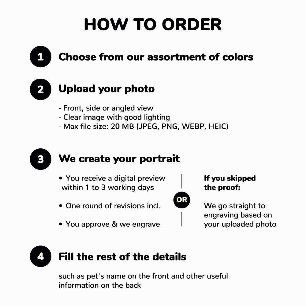 Show off your dog's personality by customizing both sides of the tag. You can pick one of our premade quotes or customize it on your own completely!